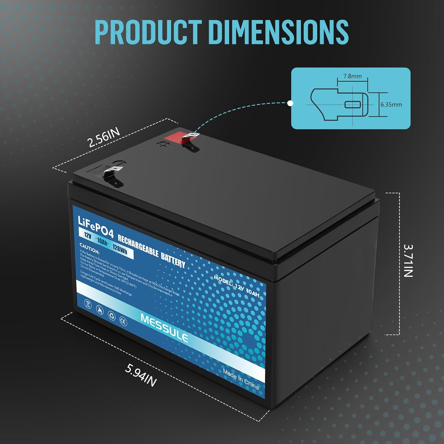 Specifications: Voltage: 12 Volt Amperage: 10 AH Chemistry: Lithium iron phosphate Package: Battery only, no wire harness or mounting accessories Wide range of applications: Compatible with Razor scooter/pocket mod/dirt bike; Ideal for ride on car, kayaks, electric scooter, emergency lighting (LED strips), 12V routers, RV/camping, Power Wheels, trolling motor, fish finders, deer feeder, backup power, ham radios, home alarms, remote cameras, fire security systems, and solar/wind power setups and more. Safety Information Battery can explode or leak if heated, disassembled, shorted, exposed to fire or high temperature, or inserted incorrectly. Keep batteries away from children.
