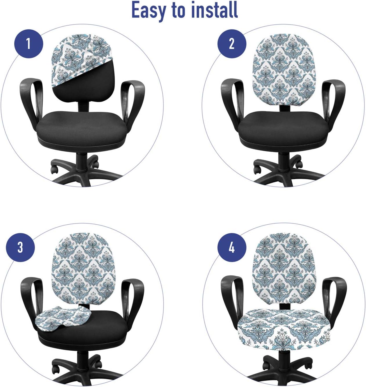 "STANDARD SIZE - 2 Piece cover set. Backrest Cover: 13.5"" to 17.5"". Seat Cushion Cover: 13.5"" to 17.5"". Made in Türkiye. FEATURES - Easy to install. Has ties to fasten the seat cover. For seat & backing of office chair. MADE FROM - %95 polyester %5 spandex lightweight knit fabric. Stretchable, protective printed cover. MACHINE WASHABLE - On cold cycle, Hang to dry. Soft and breathable, durable cover. No fading. PRINTED - With state of the art digital printing technology. ONLY CHAIR COVER, CHAIR IS NOT INCLUDED Add fun to your office time! Cover tear, rips and tattered edges of your old chair. It's easy to install and remove with smart elastic design. Protective and non-slip cover fits universal standard size office chairs. The material is lightweight, thin but durable. It'll add ultimate style to your gaming chair or studying area. Set assorted modes for every season; summer, Christmas, St Patrick's Day, Valentine's Day, Autumn, Sports Week and any theme you can imagine... Just pick your favorite from our thousands of various patterns. Also, these office chair covers are easy to take care of; machine washable, tumble dry on low. Or just buy one to make your day! This desk chair seat cushion protector adds personality to your space as well as shields from scratches, spills, and accidents. Elastic edges secure the cover quickly. With its stretchable design, it fits square or round seat cushions and backings of simple standard office chairs. These protector covers can be a gift for your co-workers, mother, father, uncle, aunt, son, daughter, boyfriend, girlfriend, husband, wife or simply white-collar worker friends. Before purchasing, please measure your chair size. The digital images we display have the most accurate color possible, however, due to differences in computer monitors, we cannot be responsible for variations in color between the actual product and your screen. ONLY CHAIR COVER, NO CHAIR. "