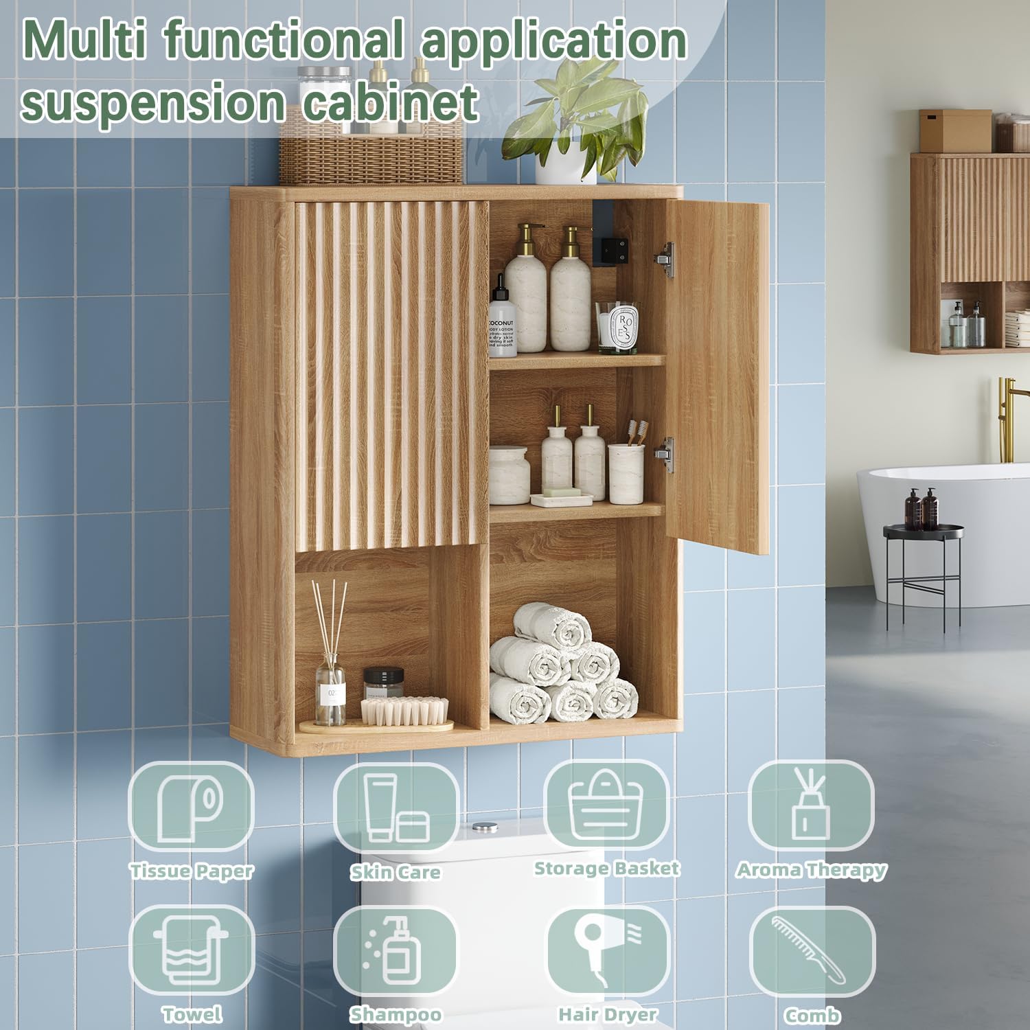 | Additional Features | 2 Fluted Doors, Adjustable Shelf, Hidden Storage Space, No Handle, Round Corner |