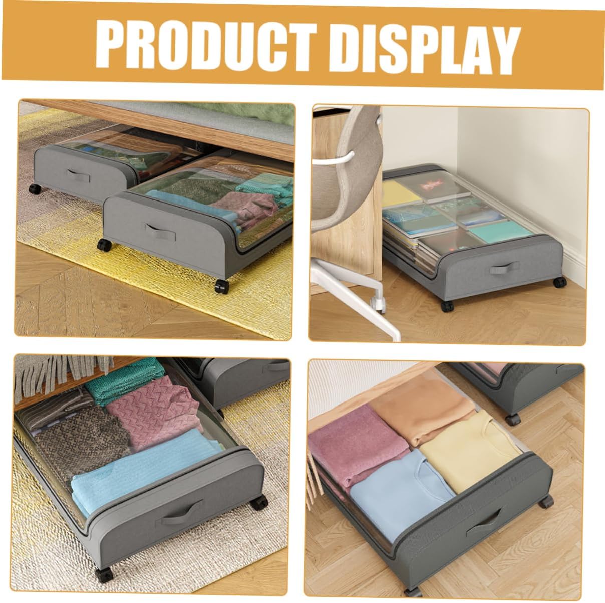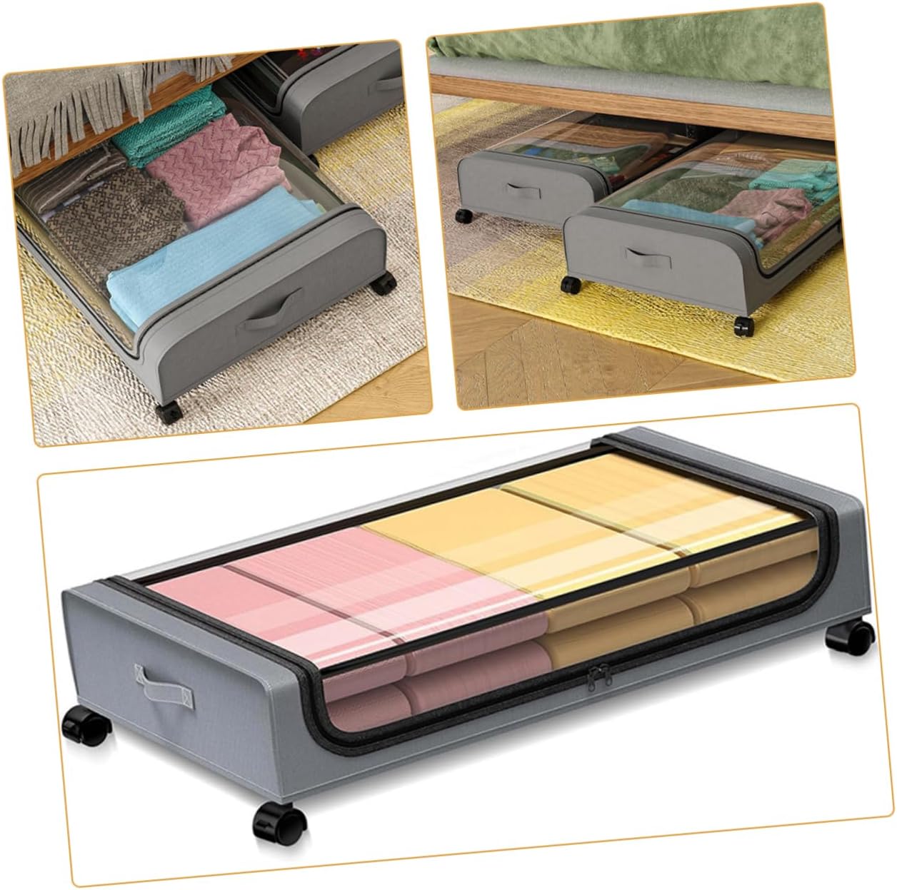Package Include 1 x Under Bed Organizer Features -Size:80.00X43.00X16.00cm/31.44X16.90X6.29in home clothes storage bag -Color:Grey bedroom storage -Material:Non-woven fabrics, iron, PVC under bed storage bag - The organizer storage box is made of breathable and mild material that is strong and does not warp, providing effective protection for your clothing under bed drawers on wheels. - This under bed storage bin features four wheels, easy to move and Clothing Organizer. - Easy opening design allows you to see what is in the bag and where it is, easily find what you are looking for with ease underbed storage boxes. - Easy to clean, simply wipe down your storage bags with a damp cloth and let dry under bed storage cart. - This storage bag is suitable to be used to store quilts, blankets, clothes, etc under bed drawers.Goods Informationlarge under bed storage Designed for home storage, this under bed organizer can help to keep your home organized.space saving storage It has a simple design, but very in use, giving you a good using experience.home clothes storage bag Made of sturdy material for long time and use.under bed organizers and storage Also can be a for your friends, they will like it