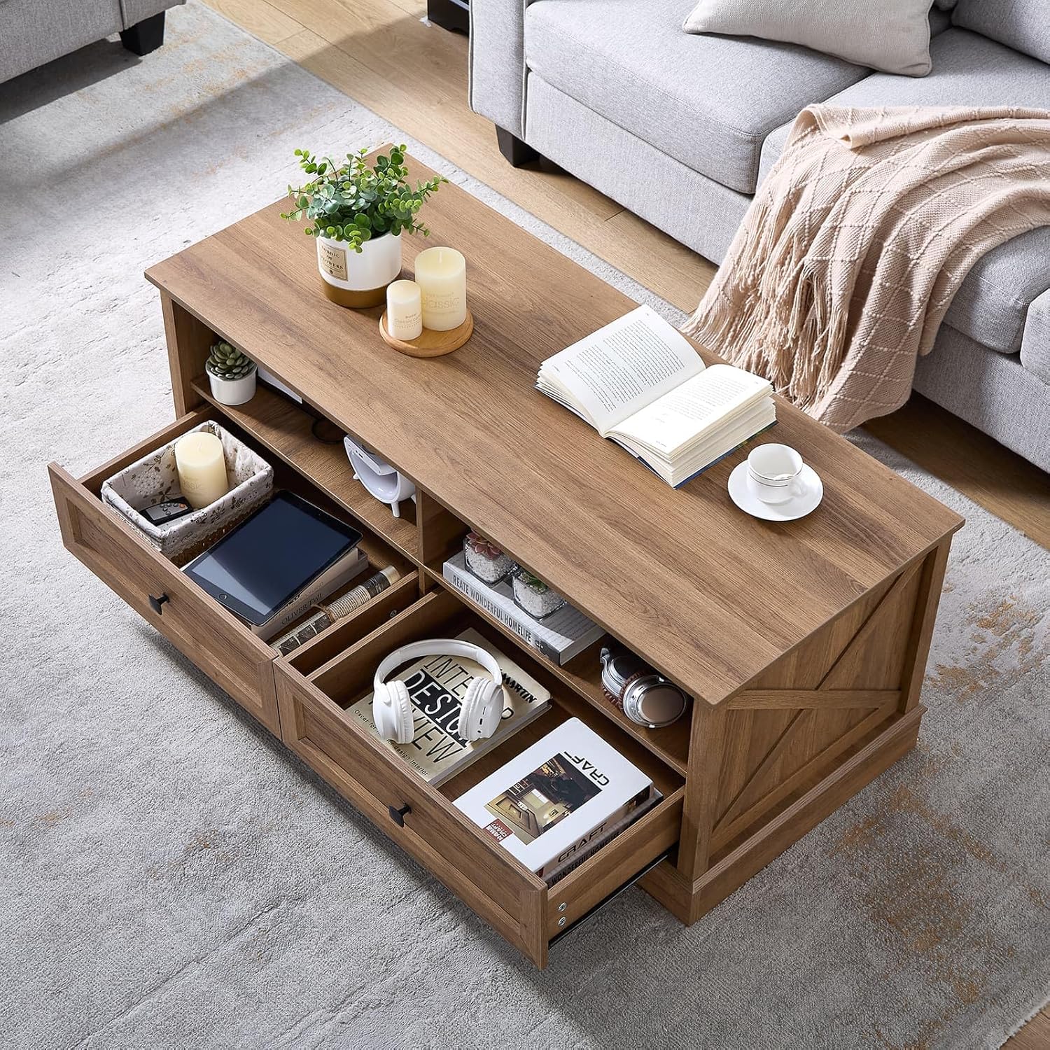 Chic Farmhouse and Industrial Style: This rectangular coffee table attracts people's attention with its X-shaped pattern design. It perfectly blends industrial and modern farmhouse styles. Its rustic finish gives a natural feeling, creating a comfortable and retro atmosphere. This table is perfect for any rustic, cottage, or casual space