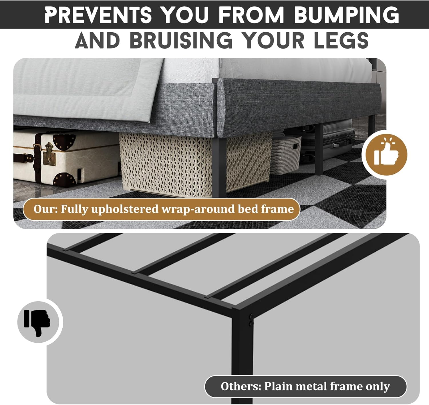 | Other Special Features of the Product | Upholstered Headboard, All Metal Slat Platform, Under Bed Storage, Noise Free, Easy Installation, No Box Spring Needed |