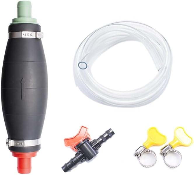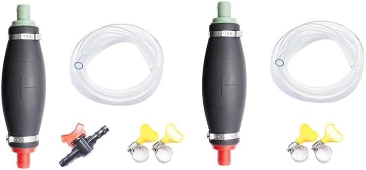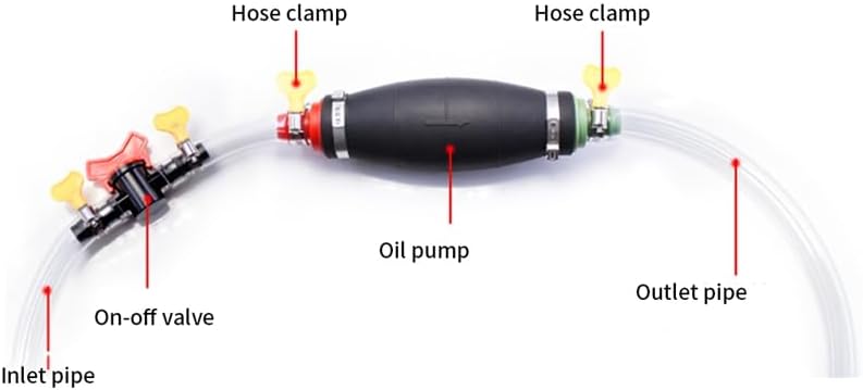 Hand Fuel Pump Manual Car Fuel Transfer Pump For syphon Fuel Gas Pump For Gas Oil Liquid With 2M Hose High flow hand siphon pump, pumps 10L/Min.Made of good material, enduring, oil proof and aging resistance.Easy to use, built-in outlet and inlet valve to prevent backflow, extraction directly, liquid outflow in 5 seconds.Simple and effective tool For priming crude oil engines on cars, motorcycles and boats.Wide Usage: This manual water pump is For fuel petrol crude oil gas oil water and other common liquids, also can be a water changer For fish tank at home.The Way To Use:1. Keep the arrow on the sphere down2. Insert the upper tube into the fuel tank3. Insert the lower tube into the container4. Pinch the rubber ball 3-5 times5. Liquid outflow