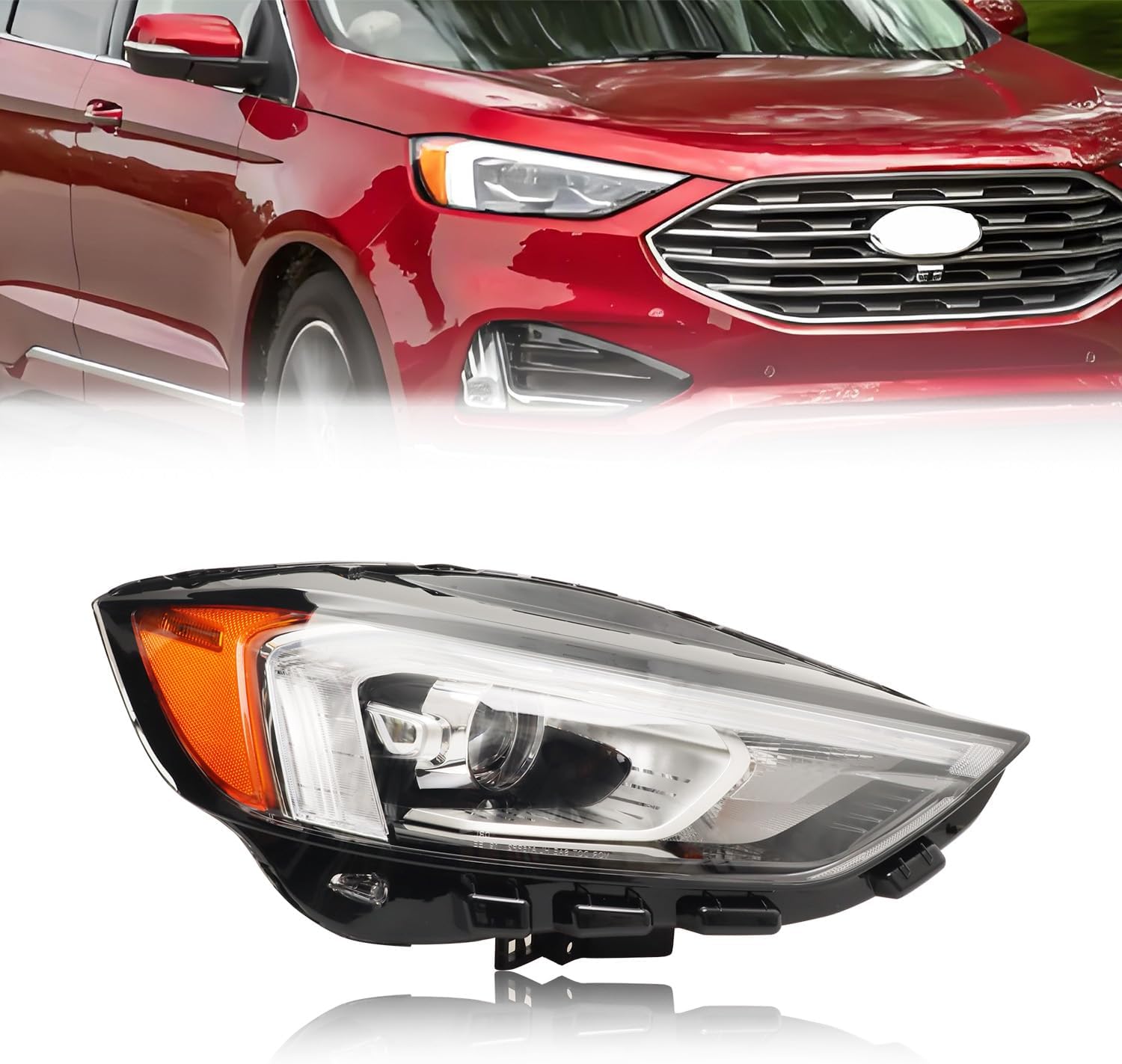 AIONIXER Headlight Assembly Compatible with Fo-rd Edge 2019 2020 2021 2022 2023 2024, [Bulbs Included] Left/Driver Side w/LED DRL, Headlamp Replacement with Clear Lens