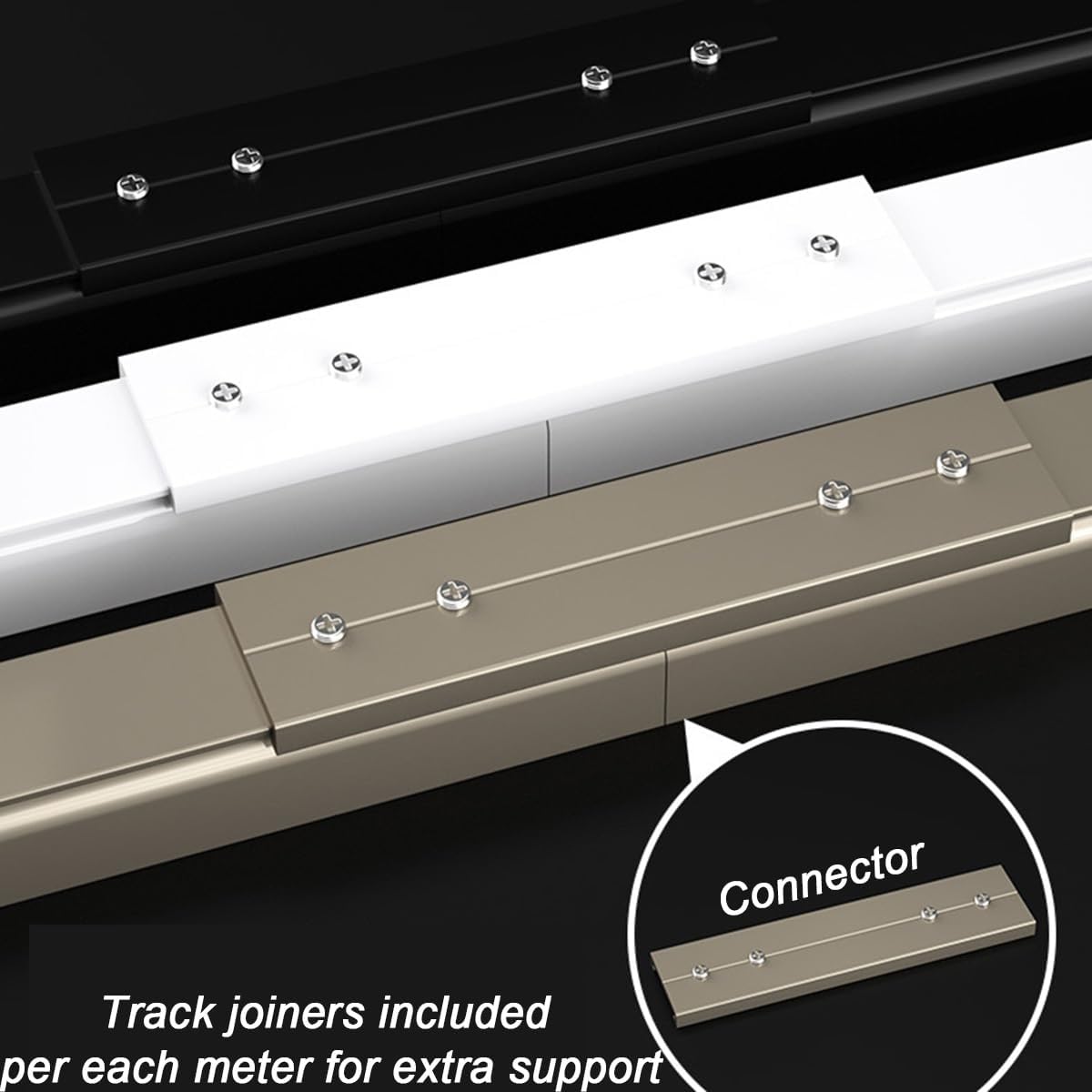 Transform your space with our Aluminum Alloy Silence Curtain Rails, designed for both functionality and elegance. Perfectly suited for various application scenarios such as bedrooms, living rooms, wardrobes, room dividers, studios, dining rooms, and classrooms, these curtain tracks seamlessly blend into any decor. Crafted from high-quality aluminum alloy, our tracks ensure durability and a sleek appearance. The track can be installed either as a ceiling mount or wall mount, providing flexibility to fit your specific needs. With a thicker single track design, it supports a remarkable weight capacity of up to 30kg, allowing you to hang heavy curtains with confidence. Available in three stylish colors—white, black, and champagne—these curtain rails will complement any interior design scheme. Each package includes all the necessary components for installation: curtain track, 8 pulleys per meter, 2 brackets per meter, and a set of 2 end covers. We also provide standard connectors tailored to your installation requirements, ensuring a hassle-free setup. Please note that the color displayed may vary slightly due to lighting conditions and monitor resolutions. We appreciate your understanding as you select the perfect curtain solution for your home or office. Elevate your space with our Aluminum Alloy Silence Curtain Rails today!