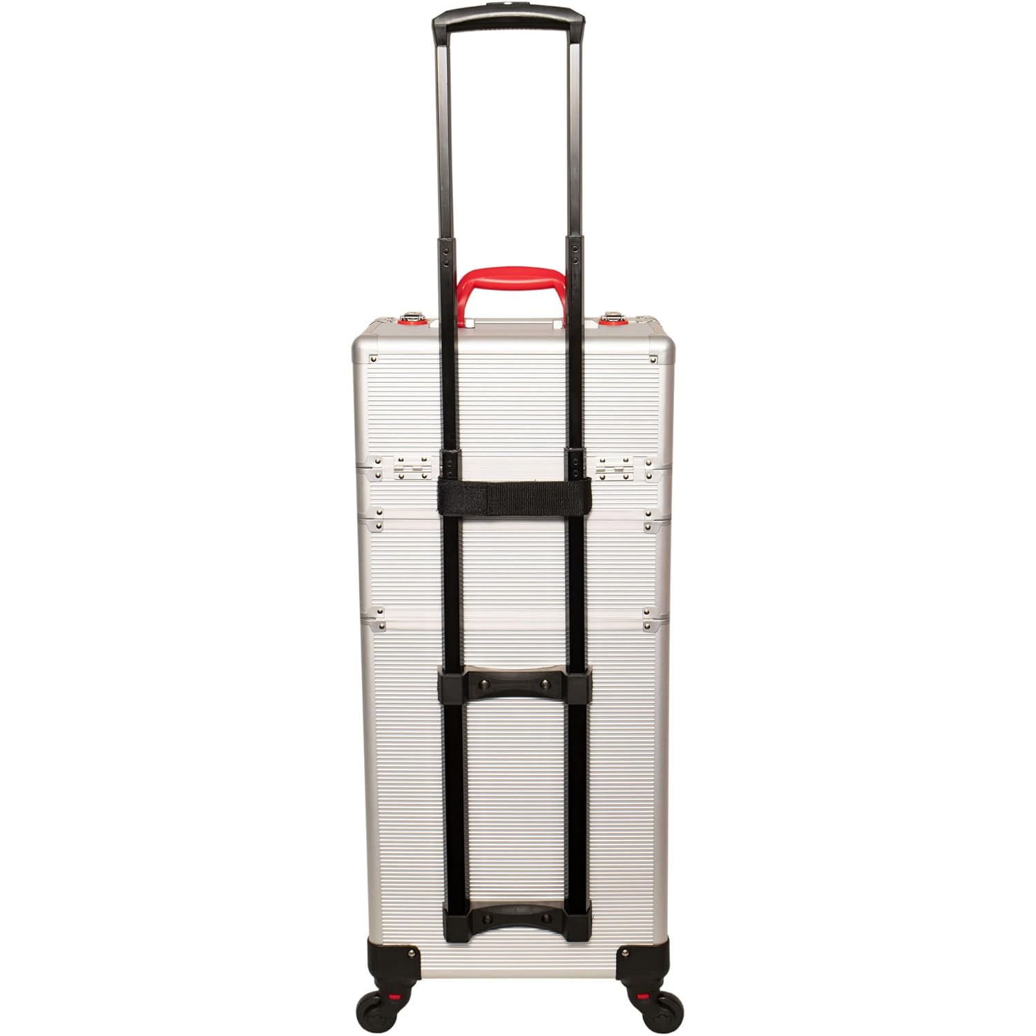 Feel ready for any beauty job when you purchase this Hiker Rolling Case. This is a fierce makeup case with 360-degree wheels and a heavy duty handle that retracts and is fitted for comfort. When you unveil the inside workings of this high quality design, you will find yourself with everything from removable trays and adjustable dividers, to a removable mirror and even spacious, bottom storage.