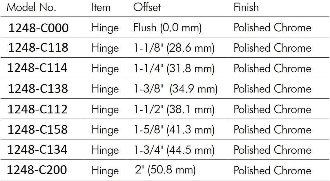 Kason 1248 Series Reversible Cam-Lift Walk-in Hinge with 1-1/2" offset Chrome Finish NSF Approved Model No. 1248-C112