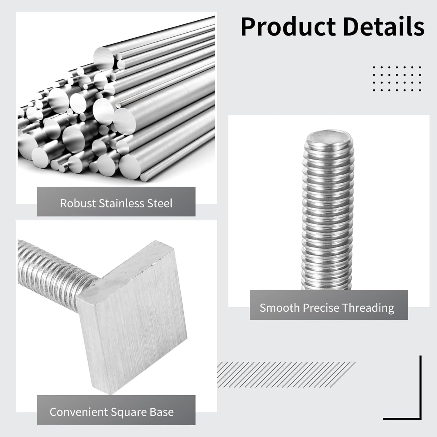 Color:silver Material:304 stainless steel Product Size: 0.79 times;0.79 times;1.77in Package Includes:12 times;T slot bolt, 36 times;washer, 12 times;nut Note: - Please refer to the measurement. Tiny measuring error is allowable in normal range. - There might be a little color difference due to the monitor, camera or other factors, please refer to the physical item.