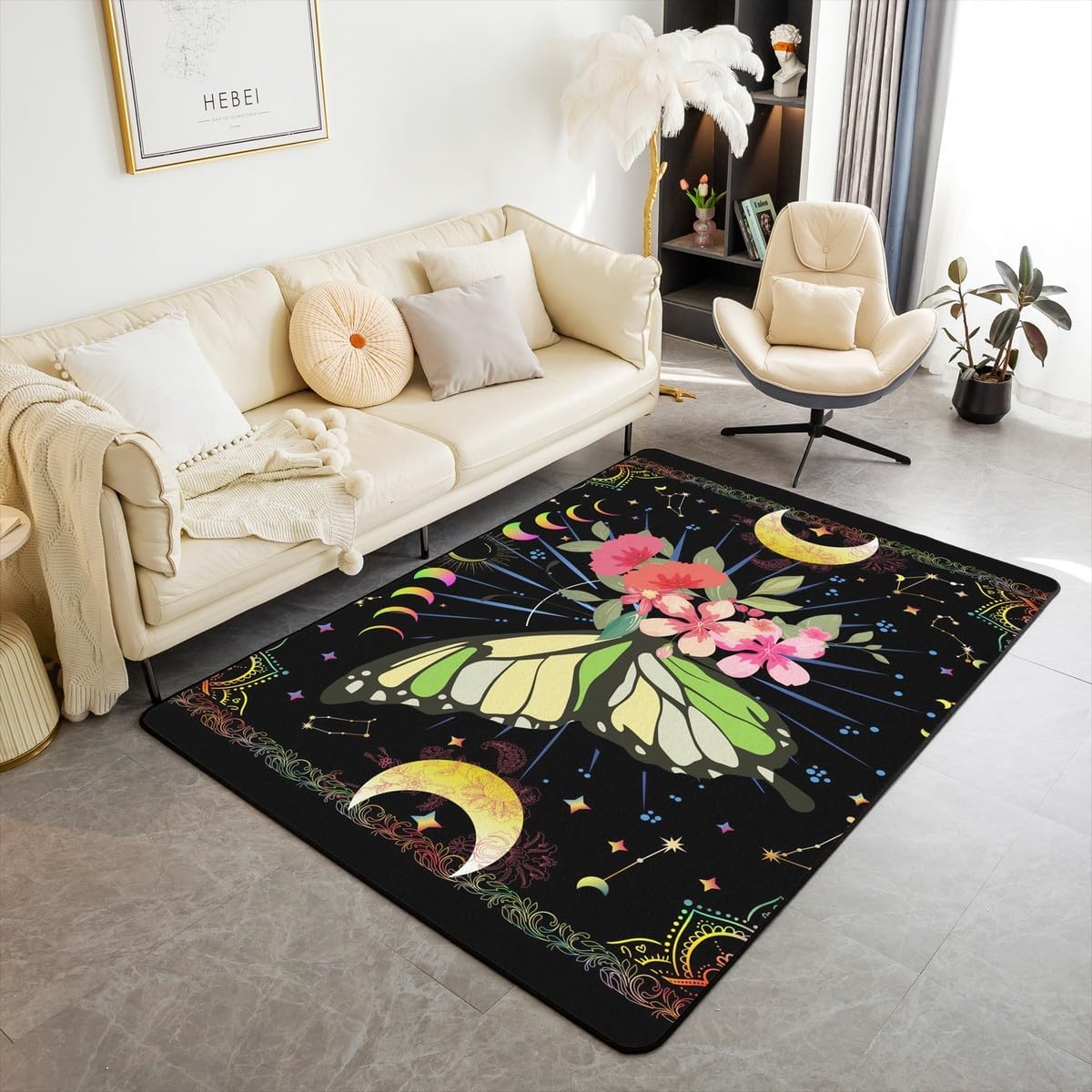 Tips: The carpet will arrive with temporary creases, you can repeat the process several times by rolling the carpet in the opposite direction of the creases and then spreading the carpet flat and pressing the edges of the roll with a heavy object to restore the carpet to its original state. We recommend using an iron to iron carpets at low temperatures more quickly Size: 2 sizes can be chosen of our rugs dimension: 3' x 5' x 0.39'' 100cm x 150cm x 1cm. 5' x 6'6'' x 0.39'' 150cm x 200cm x 1cm. Material: Made with 100% polypropylene. No chemicals used, No dye substance harming the health of you or your family. The rubber non slip design on the bottom of the area rug for bedroom is the safest protection. One piece is enough,you don't need to buy additional non slip carpet pads Machine washable: Soak in cold water for 10 minutes,then folded twice and put into the washing machine on gentle cycle, and then dry in the air.Do not use chlorine or bleach Features: With many different patterns to choose from, you will easily find rugs to coordinate with your decor. Our rug is widely used as the floor rug as well as a play mat, kitchen rug, bedroom rug, laundry mat, living room mat, office rug etc. Notes: Due to the light and screen setting difference, the item's color may be slightly different from the pictures Please allow slight dimension difference due to different manual measurement