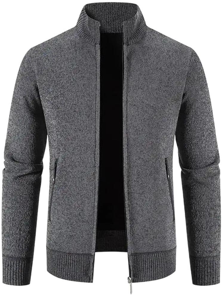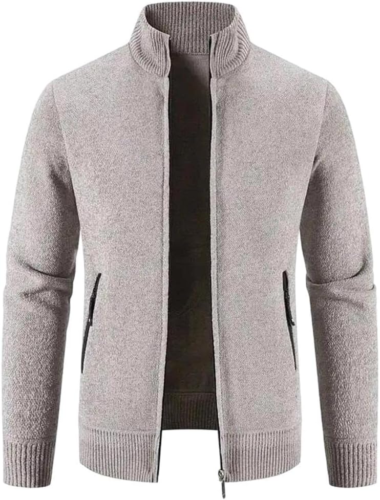 Men Stand Collar Sweaters Fleece Thick Warm Knitted Sweater Coat Solid Zipper Cardigan