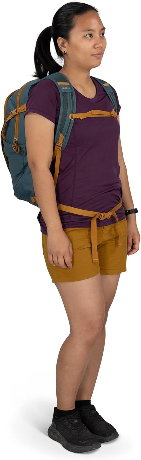 The Osprey Daylite Plus backpack offers a versatile, lightweight carry solution for your daily routine and spontaneous adventures. Designed with clean lines and sustainable materials, it easily transitions from casual hiking to farmers markets to travel. A padded internal sleeve protects a laptop and tablet, while a spacious main compartment holds books, layers, gym gear and more. Front and side stretch mesh pockets offer quick access to snacks, water bottles and extra gear. A breathable mesh-covered foam backpanel, padded harness and adjustable shoulder strap ensure stability and all-day comfort. Whether you're walking across campus, hopping on a flight or pedaling the bike path, the Daylite Plus adapts to your pace. It also integrates with several larger Osprey travel packs, for additional storage and carry options. Built to last from 100% recycled, bluesign® APPROVED polyester main body fabric, with playful hues and prints to extend your personality and accentuate your style.