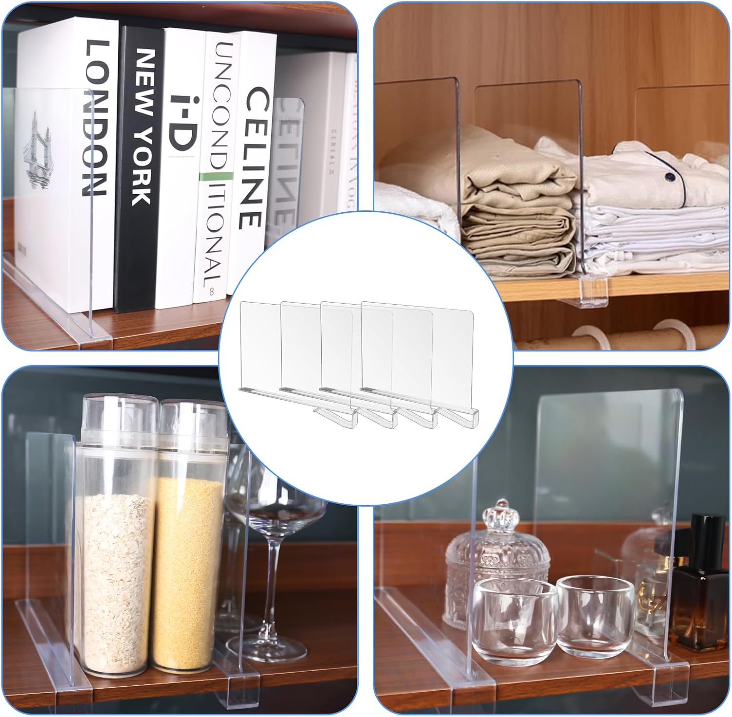 With this acrylic shelf divider, you can easily divide the large dividers in your home into different functional areas. - The edges are smooth and have no sharp corners that will not scratch your shelves and items. - The best thickness for the shelf is 0.75-0.98 inches (no more than 0.98 inches for the thickest, or it will crack). - If this divider shelf becomes dusty, simply wipe the surfaces with a clean, damp cloth and they will look like new. Size: 28 x 20 cm. Colour: transparent. Material: acrylic. Features: waterproof, wear-resistant, durable. Packing list: 4 x shelf dividers. If you have any questions about your order, please do not hesitate to contact us