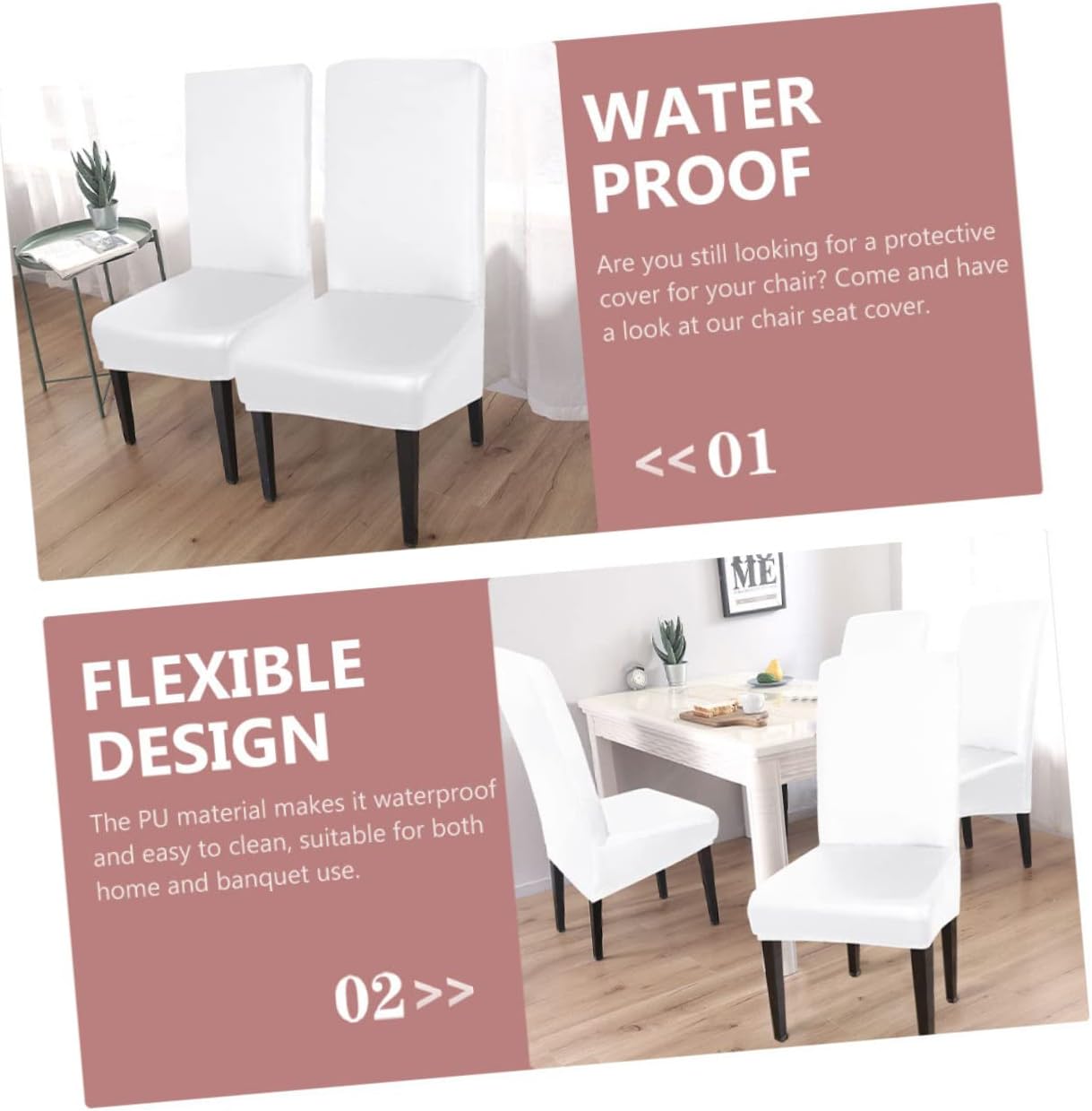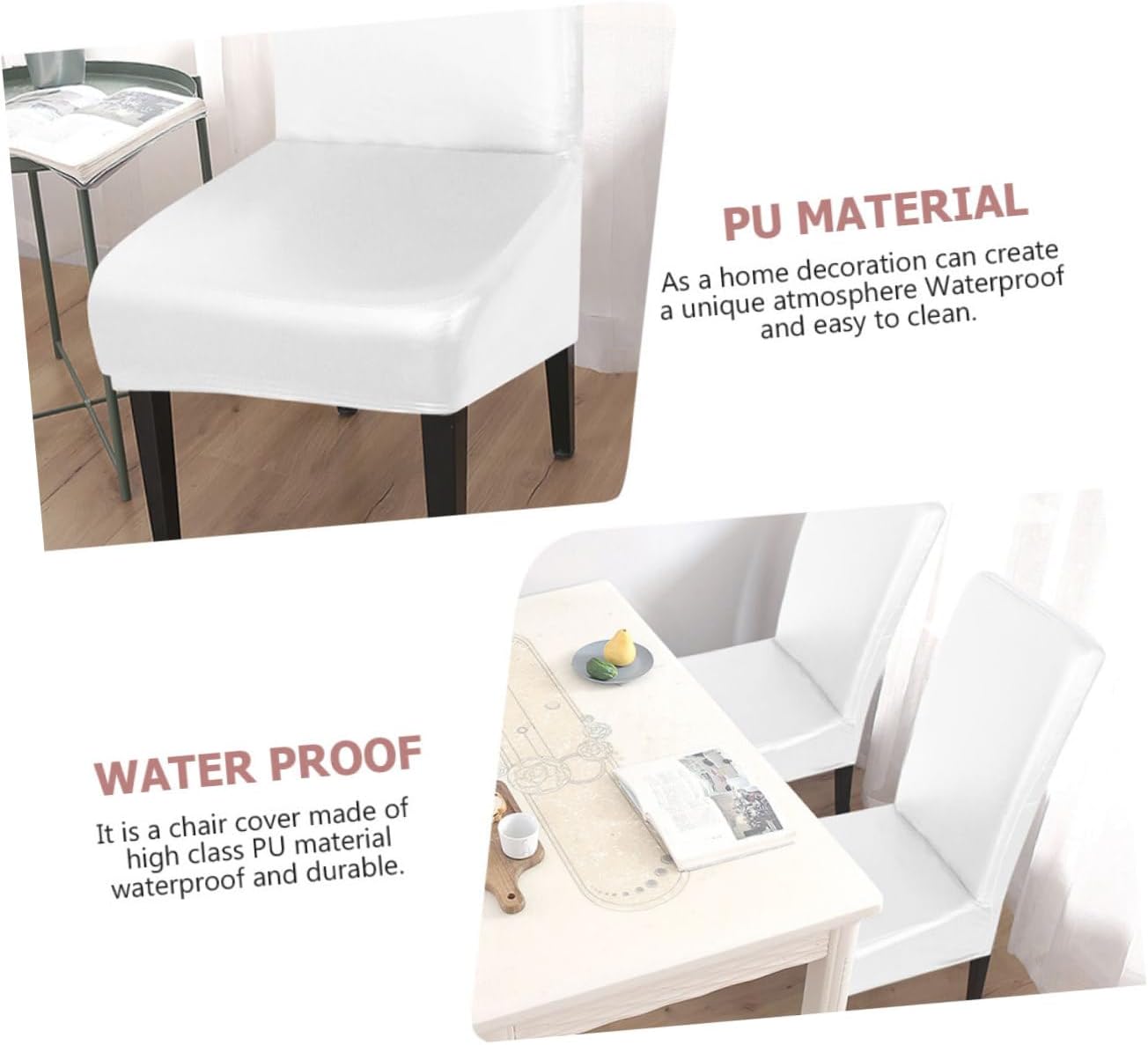 Package List 4 × Chair Covers Characteristics - Material: PU waterproof fabric elastic dinning chair cover - Size: 100.00X55.00X50.00cm/39.30X21.61X19.65in Chair Protectors - Color: White chair covers - This chair cover accessory is applicable to chairs, very and PU Waterproof Chair Cover. - Fine workmanship ensures the exquisite details and appearance, it's decorative and Chair Decor. - The chair cover is suitable for parties, festivals and other occasions to increase interest Dinning Chair Sleeve. - It is made of high grade material, it’s thick and , and waterproof and oil-proof dinning room chair covers. - The chair cover comes with a simple appearance design, which is modern and Stretch Chair Cover.Goods DescriptionChair Decor Are you still looking for a chair cover for your chair? want to get a new look for your chair? Look at our product that can meet all your requirements with durability and function.Household Chair Cover It can be used as a chair decoration and also can serve as a protection to your chair