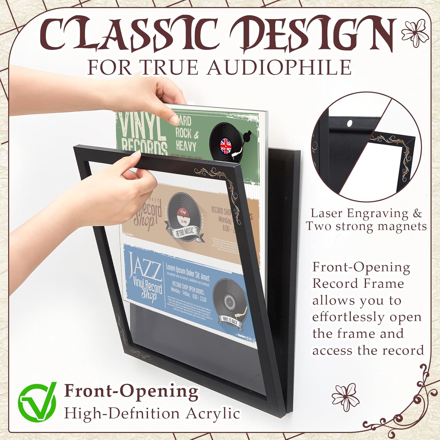 Features: The 13 x 13 inches record frame is compatible with most 12 x 12 inches vinyl records. The 3 pack is sufficient to meet your storage and display needs. This front mounted vinyl record frame has smooth border lines and durable wood. The acrylic cover is light, shatterproof, transparent, and has a good display effect. A vinyl photo frame that can display your collection. Specifications: Material: wood, acrylic Color: black, transparent Size: about 13 x 13 inches Package includes: 3 x Record display racks Notes: Manual measurement, please allow slight errors on size. The color may exist a slight difference due to different screen displays. Small parts included, please keep them away from little kids to avoid swallowing risk.