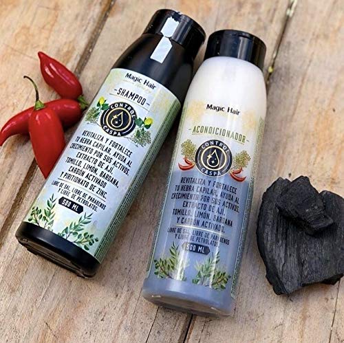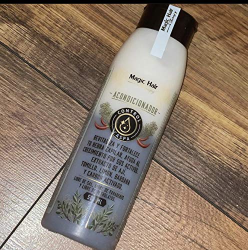 Este acondicionador de Magic Hair contiene productos naturales tales como extracto de ají, tomillo, limón, bardana y carbón activado hidratan y fortalecen las fibras del cabello dejándolo sano y liso. Aplica después del shampoo, colocando suficiente cantidad sobre el cuero cabelludo y realizando masajes circulares con la llema de los dedos.