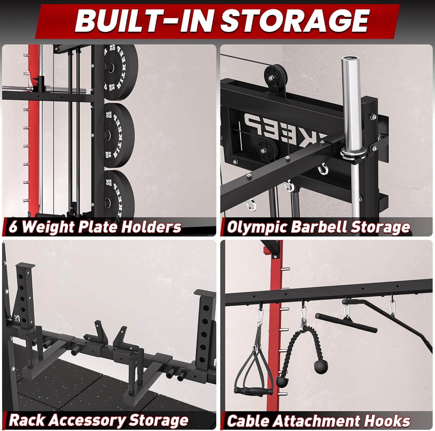 | Included Components | Pulley System Ratio,Linear Bearing,Pull Up Bar,Safety Arms,Dip Handles,J-Hooks,Lat Pull Down Bar,Straight Bar,Lindmine & T-bar,Foot Board |