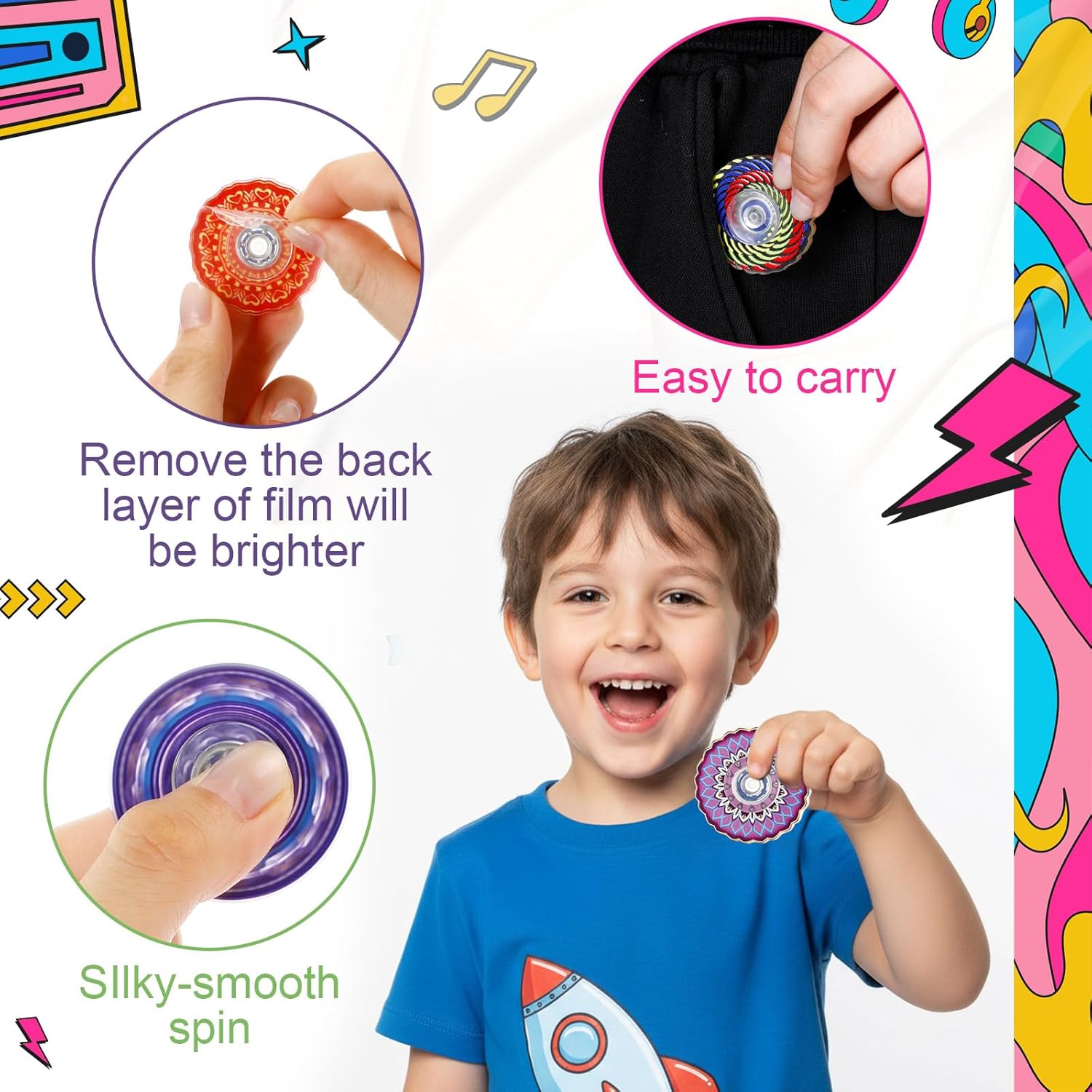 Features: Suitable Sized: These mini fidget spinners are designed for ultimate portability. Easily slip them into your pocket, purse, or backpack for spontaneous spinning sessions wherever you are. The convenient size is ideal for quick stress breaks during busy days or long travels, addressing the need for a compact, lightweight, and portable stress relief solution. Mandala Design: Each spinner features intricate mandala patterns that create mesmerizing visual effects when rotating. Specifications: Material: acrylic Color: multicolor Size: about 0.6 inches diameter Package includes: 100 × Mini fidget spinners Notes: Manual measurement, please allow slight errors on size. The color may exist a slight difference due to different screen displays