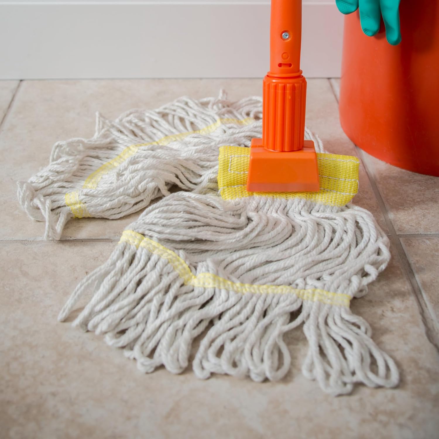 Highly absorbent and durable blended 4-ply yarn; looped-end construction provides greater floor coverage; mops are not PRE-SHRUNK; color-coded mops allow for assignment to specific work areas; handles sold separately; available in a new brick Pack to reduce shelf space.