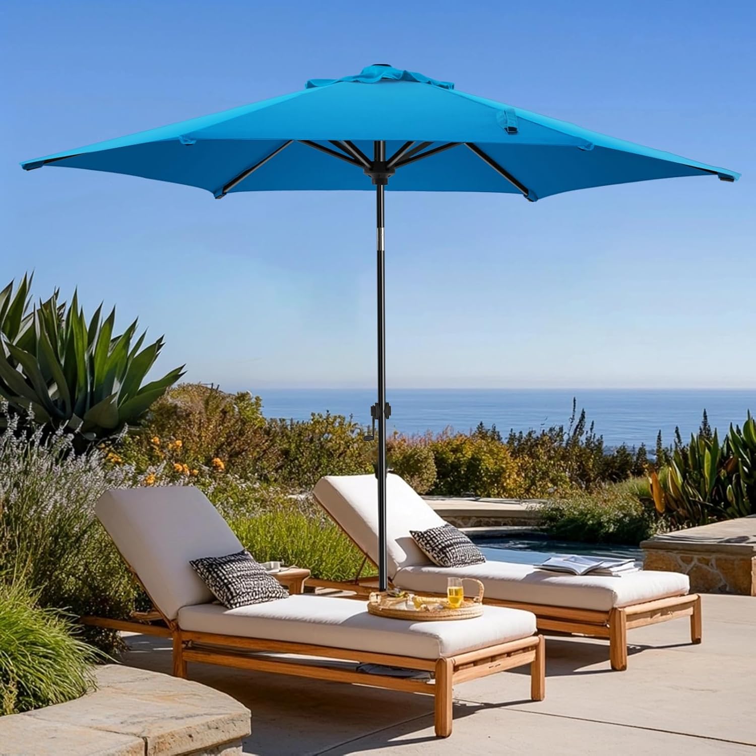 • EASY TO ADJUST: Open, close and tilt the umbrella with ease! Wikiwiki market umbrella is designed with a crank system for easy opening and quick use. Push button tilt allows for more angles of shade protection and allows for coverage all day.