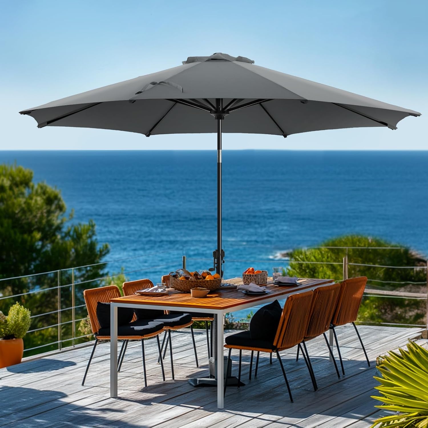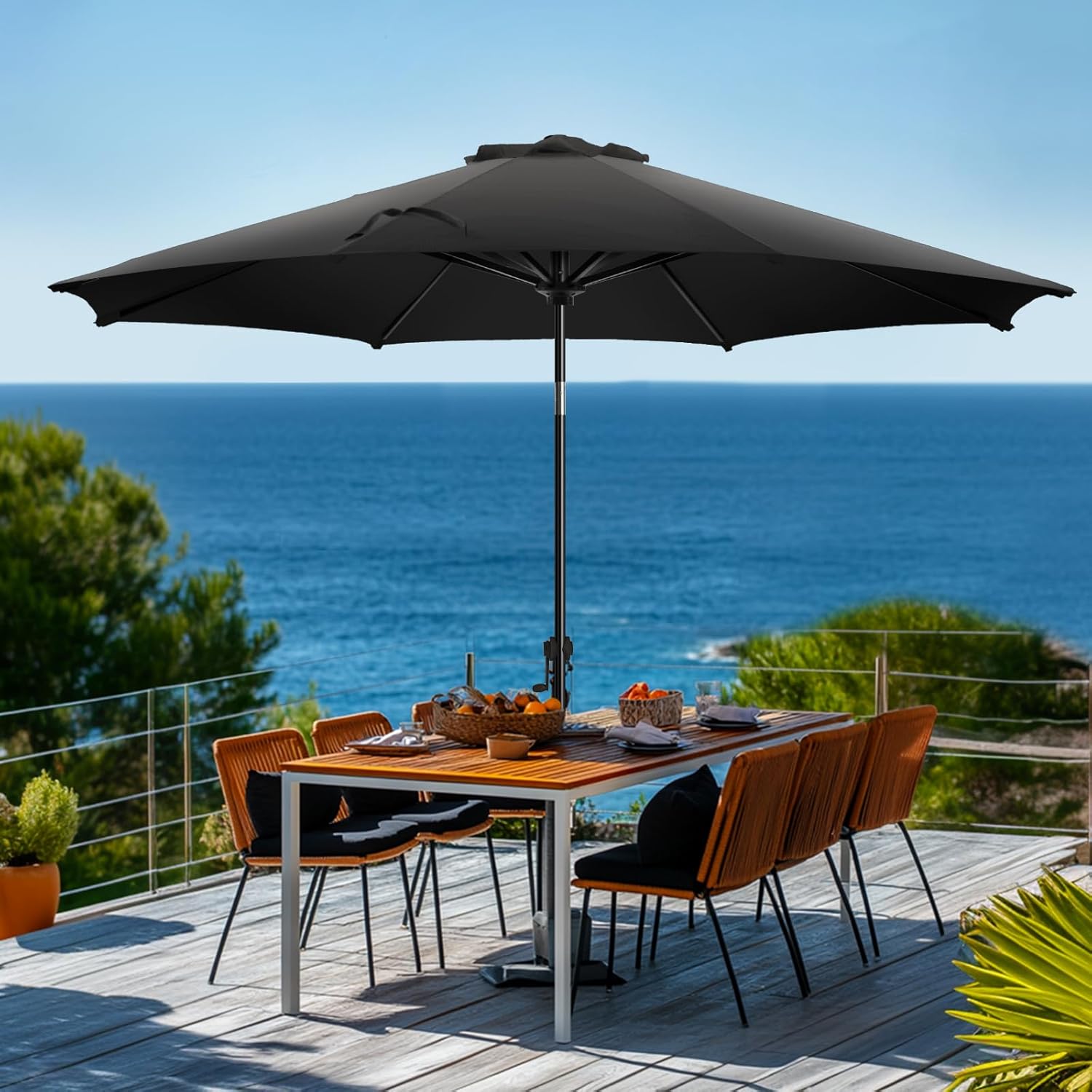 wikiwiki 9 FT Patio Umbrellas Outdoor Table Market Umbrella with Push Button Tilt/Crank,8 Sturdy Ribs, Fade Resistant Waterproof POLYESTER DTY Canopy for Garden, Lawn, Deck, Backyard & Pool