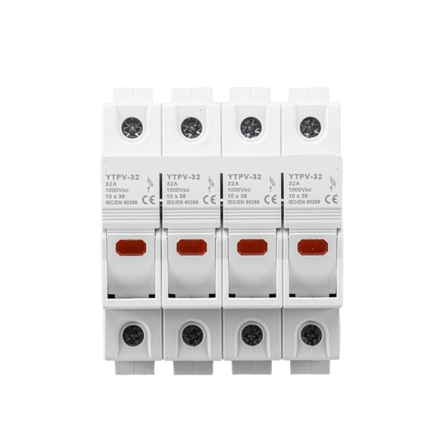 Fuse LinksProduct introductionA range of fuses in a 10x38mm package specifically designer for protection and isolation of photovoltaic strings.The DC fuses are capable of interrupting low overcurrents associated with faulted PV (reverse current, multi-array fault) string arrays.Product applicationsSolar Panels, Solar Photovoltaic, DC Strings.ADVICE: Always use fuses on positive and negative terminal on any photovoltaic string rated up to 1000VDCProduct features1.Rated voltage 1000VDC2.Amps: 1A, 2A, 3A, 4A, 5A, 6A, 8A, 10A, 12A, 15A, 20A, 25A, 30A, 32A3.Fuse, size: 10x38mm4.Rated breaking capacity 20kA dc5.Minimum interrupting rating 1.3x In6.Time constant under 1ms7.Standard EN/ IEC 60269-6Product specificationsProduct ModelYTPV-32Pole1P, 2P, 3P, 4PColourWhiteRated Current (A)32Rated Voltage(V DC)1000InstallationRail installationFuse, link size(mm2)10*38