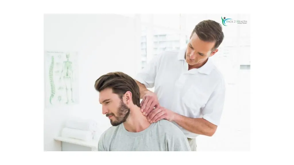 A physical therapist at Back 2 Health performing a manual neck stretch and cervical mobilization on a female patient to provide physical therapy for neck pain in Michigan. Jan29th 2026